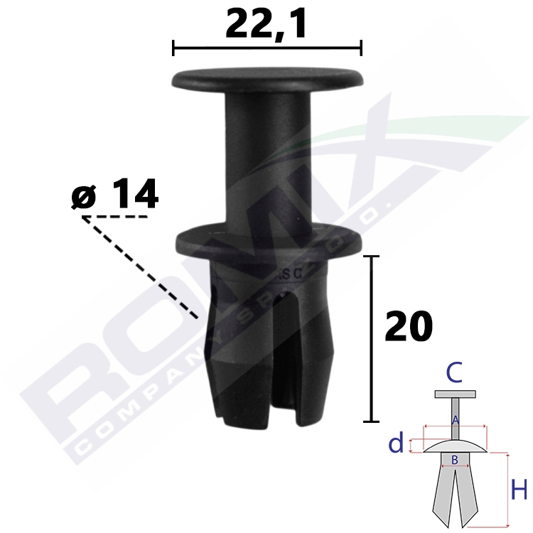 A 21,7 B 13,5 C 22,1 d 2 H 20 w otwór ø 14