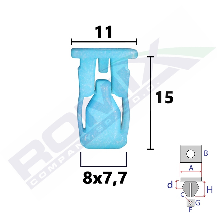 Dimensions: A 11 B 11 C 4,2 F 7,7 G 8 H 15