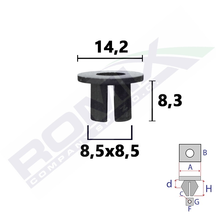 A 14,2 C 6,6 F 8,5 G 8,5 H 8,3 na wkręt 6,2