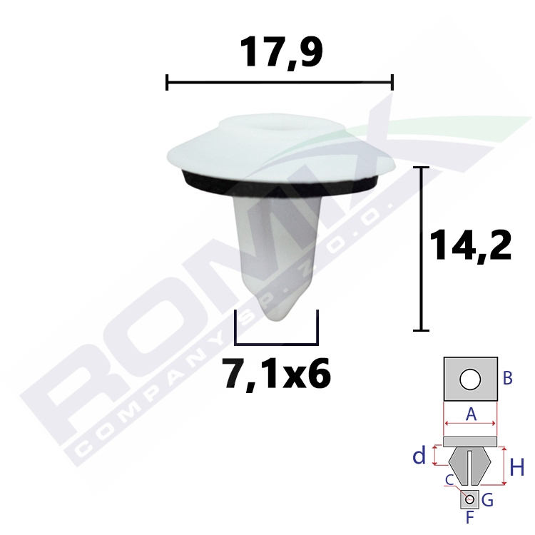 Dimensions: A 19,8x10,1 B 9,4 H 13,7 w otwór ø 9,5