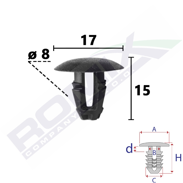 A 17 B 8 C 9,5 d 3,5 H 15 w otwór ø 8