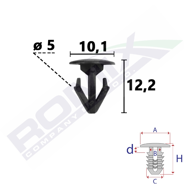 A 10,1 B 4,8 C 7,2 H 12,2 w otwór ø 5