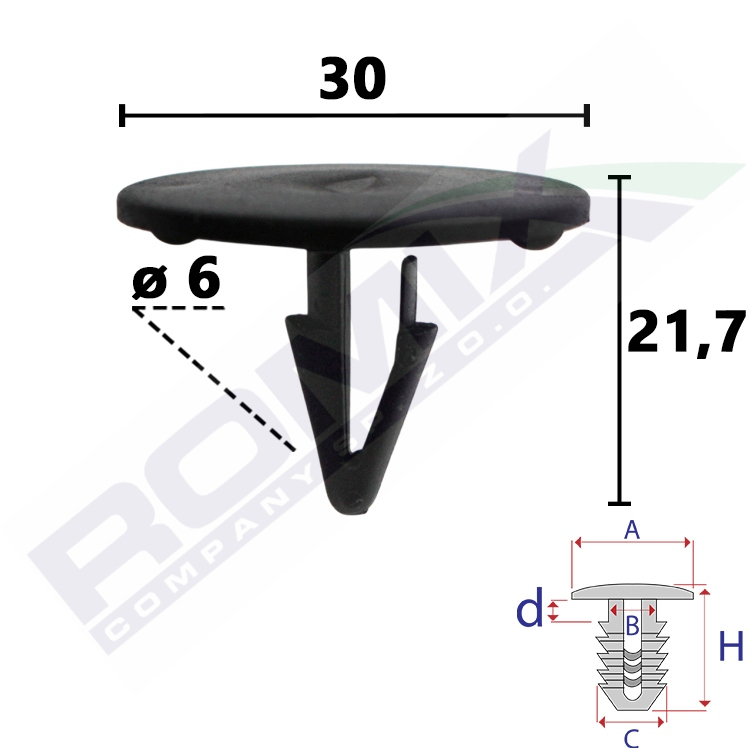 A 30 B 6,5 C 9,5 d 5 H 21,7 w otwór ø 6