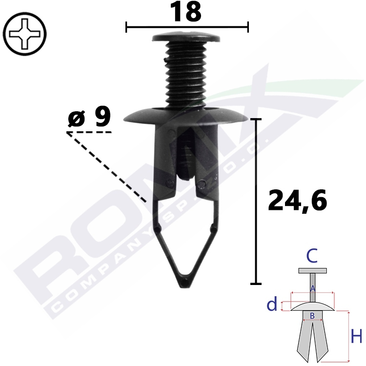A 18 B 9 C 9,3 d 2 H 24,6 w otwór ø 9