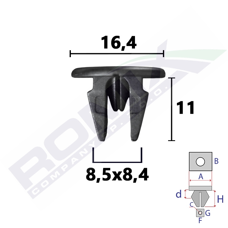 Wymiary: A 16,4 C 4,6 F 8,5 G 8,4 H 11 na wkręt 6,2