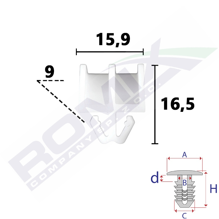 Wymiary: A 15,9 B 9,2 C 10,6 H 16,5